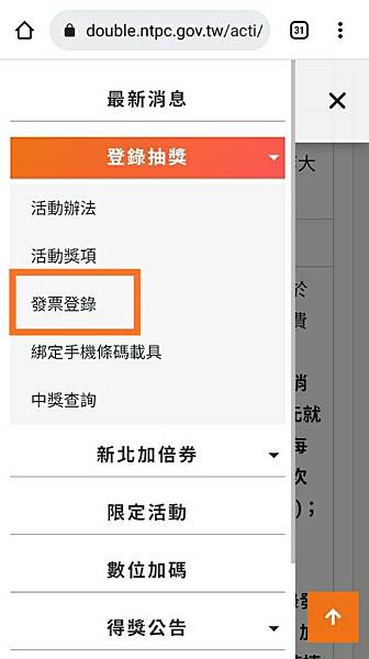 活動官網登入發票就行,要注意要先註冊會員才可以參加活動,一般民眾的發票抽獎資格是全台民眾都可以參加。但有一個學生加碼抽是要就讀於新北市轄內國小至大專院校之在學生(限註冊帳號本人)才可以抽獎喔!